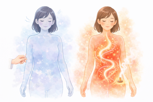 当院では厚手の靴下を常備しており、足を温めながらセルフケアのお灸をお伝えしています。